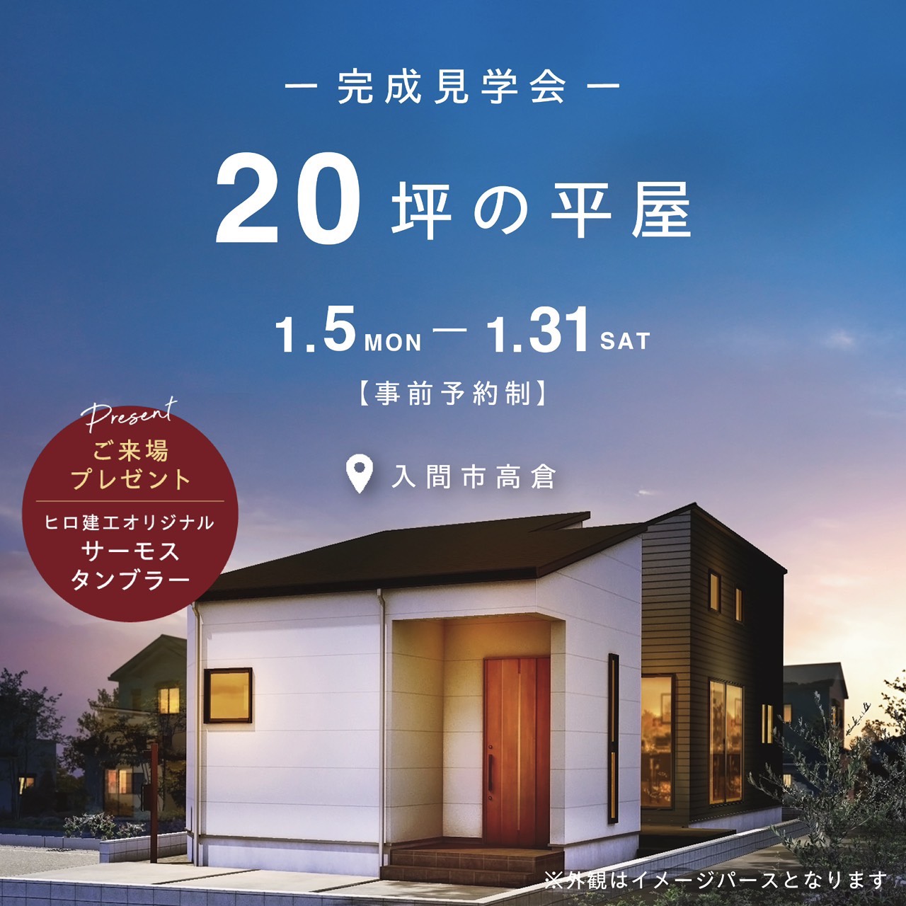【1月5日(月)~1月31日(土)│入間市高倉】中庭につながる20坪の平屋のおうち 完成見学会