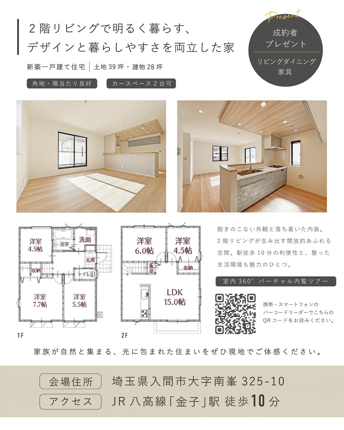 | イベント名 | 【完全予約制】2階リビングで明るく暮らす家|デザインと暮らしやすさを両立|入間市南峯 見学会 |