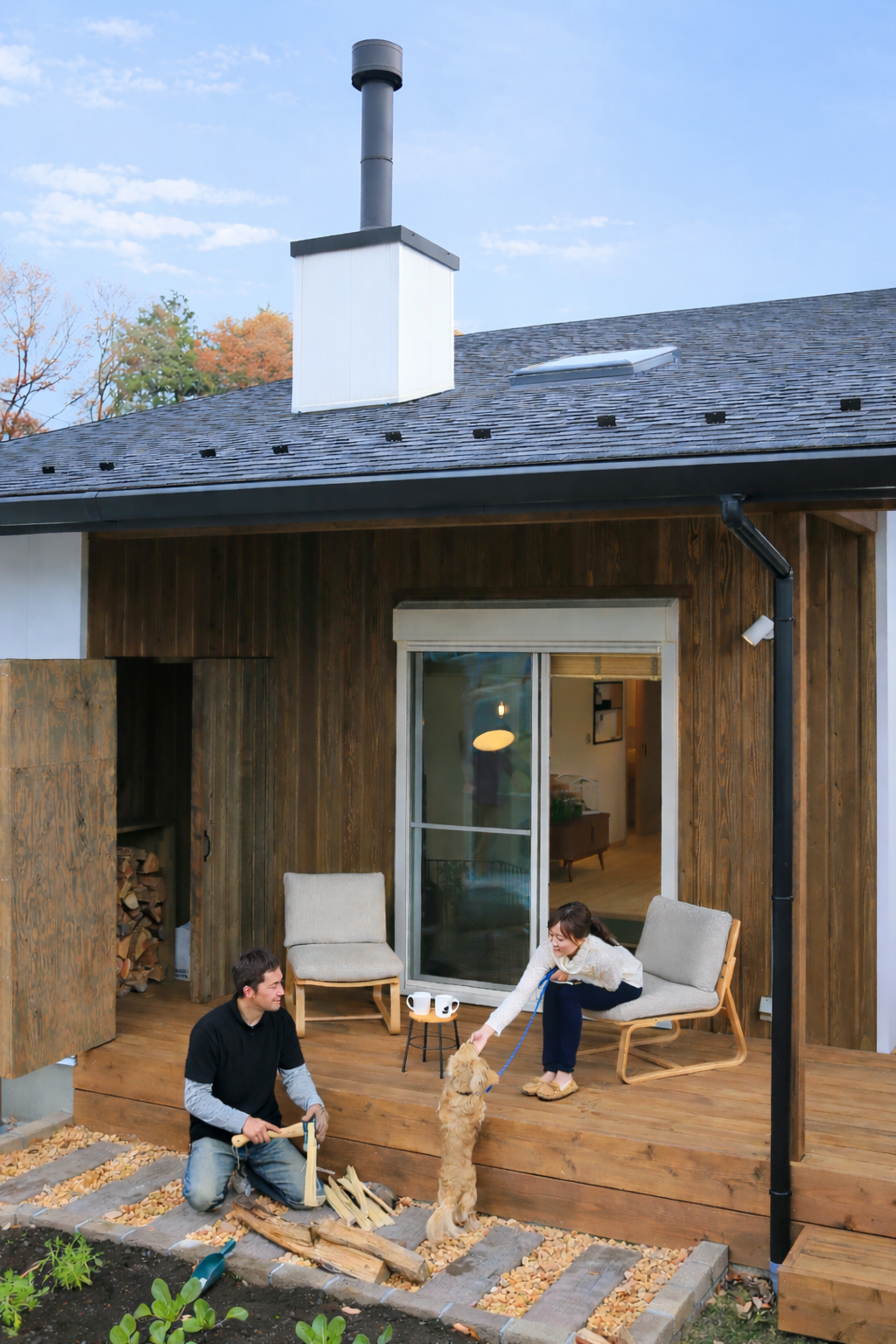 薪割や家庭菜園など、外での時間を愉しむ暮らしが広がります。